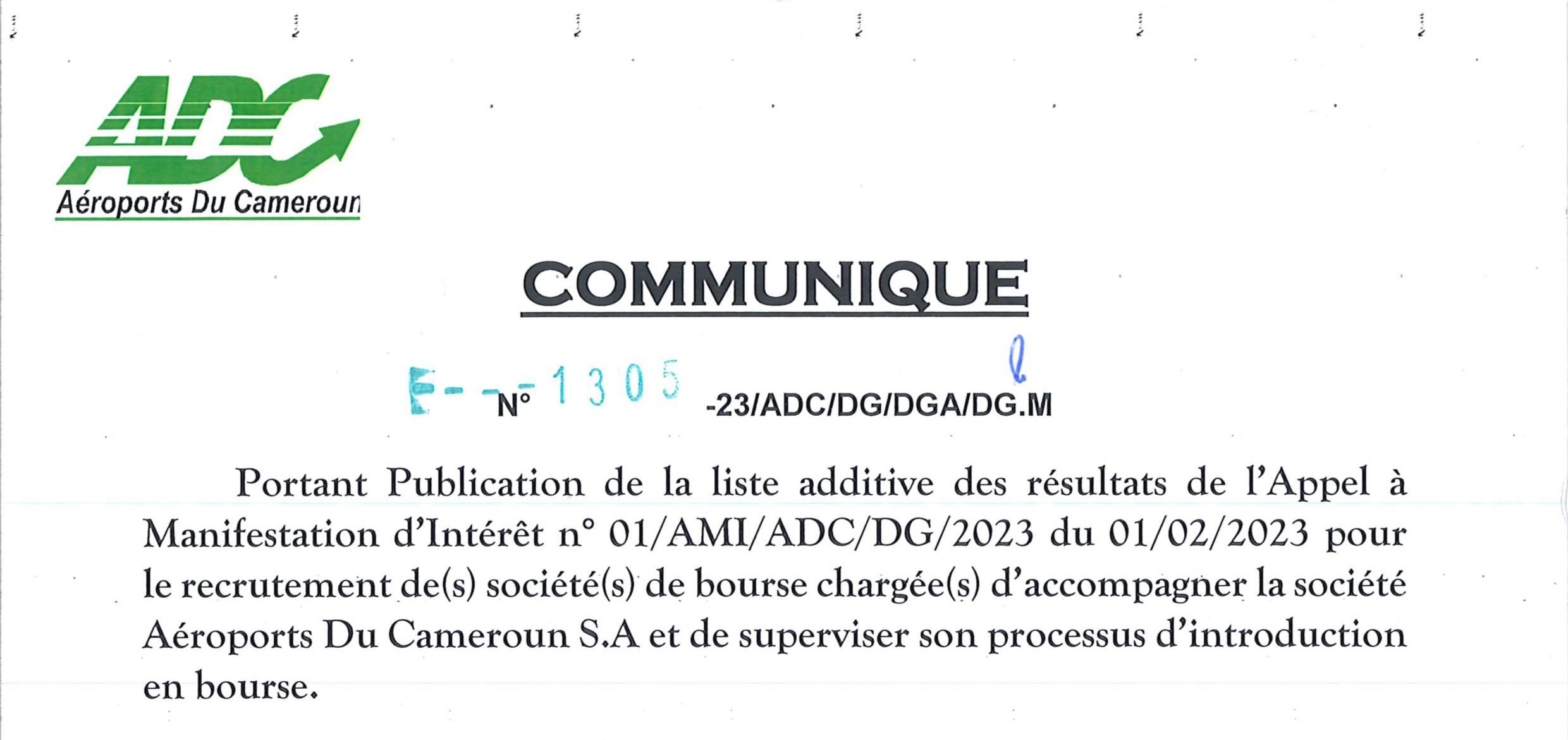 COMMUNIQUE N°1305 -23/ADC/DG/DGA/DG.M