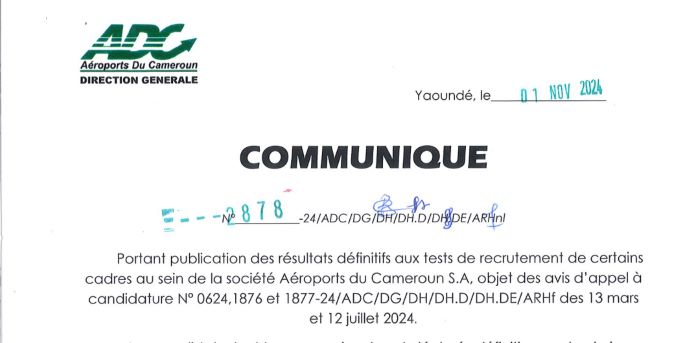 Portant publication des résultats définitifs aux tests de recrutement de certains cadres au sein de ADC S.A.