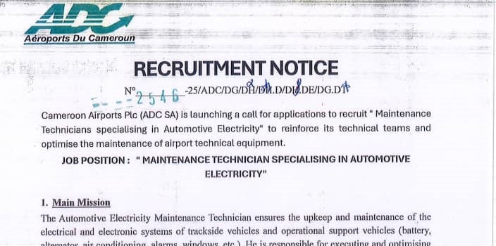 RECRUITMENT NOTICE N°__2546________-25/ADC/DG/DH/DH.D/DH.DE/DG.DT