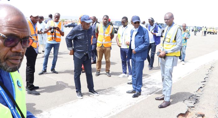 Lors de cette visite, les autorités ont rencontré les responsables des travaux et les ingénieurs en charge du projet de réhabilitation. Ils ont pu constater de visu l'état de la piste et les travaux en cours visant à restaurer les normes de sécurité exigées pour un aéroport international.