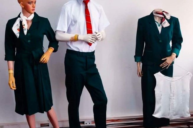 Ces uniformes de travail sont constitués des tenues pour homme et pour femme. Le modèle homme est une chemise blanche, assortie d'une cravate rouge-bordeaux, estampillée « ADC SA », un pantalon de couleur verte et une paire de chaussures antidérapantes.