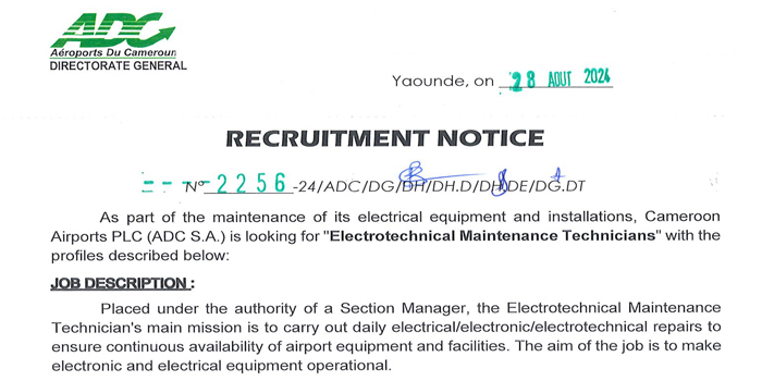Dans le cadre de la maintenance de ses équipements et installations électriques la société Aéroports Du Cameroun recherche des Techniciens de Maintenance Electrotechniciens.